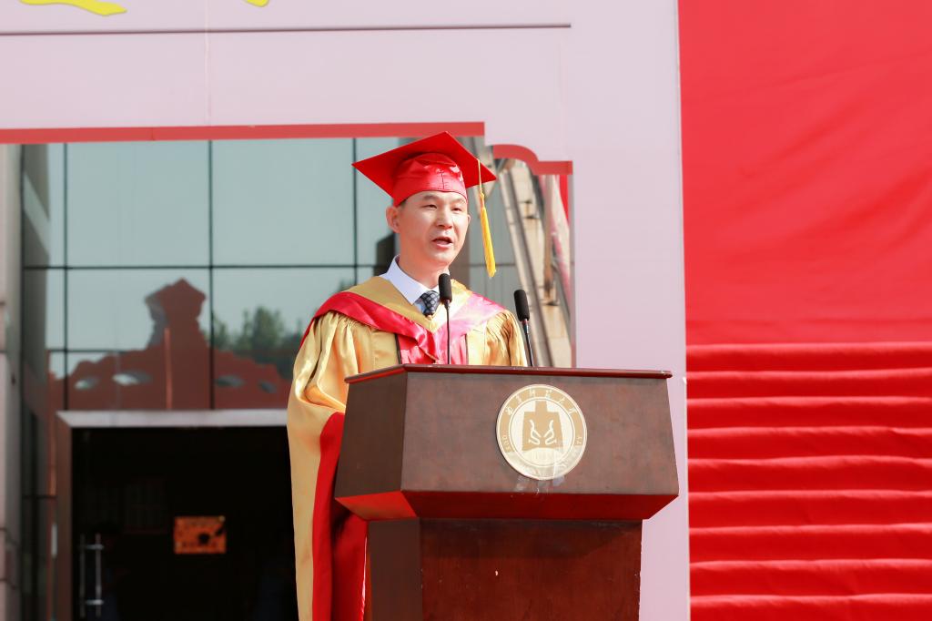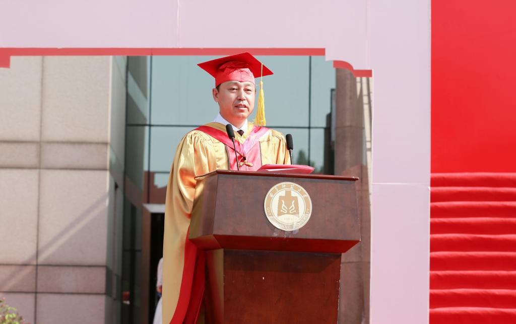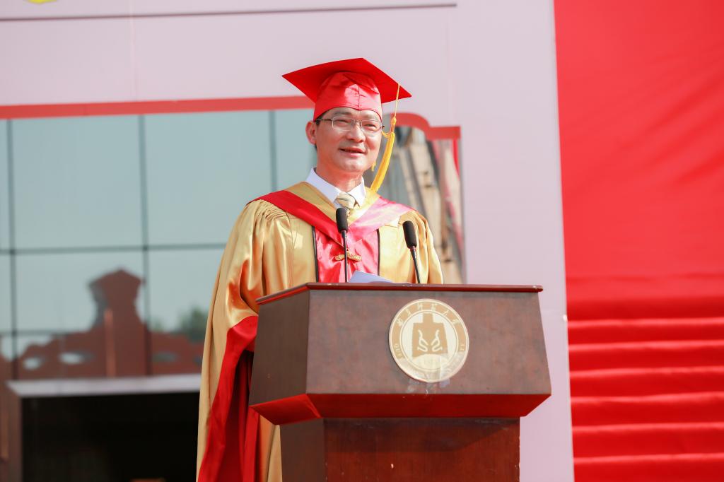 张洪海代表学校,向顺利完成学业的同学们表示最热烈的祝贺,向精心培育他们的老师、付出辛勤养育的父母、给予支持鼓励的亲友,致以最诚挚的感谢和最崇高的敬意。