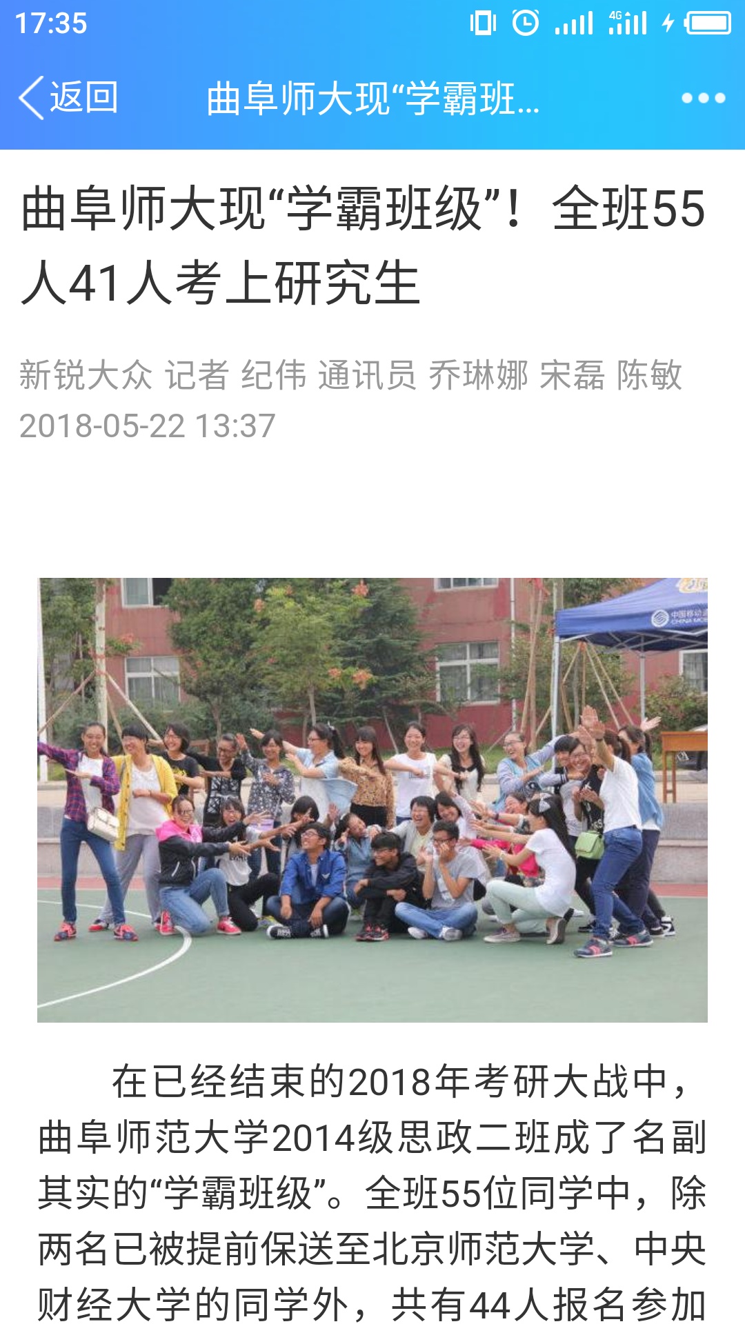 新锐大众:曲阜师大现“学霸班级”!全班55人41人考上研究生